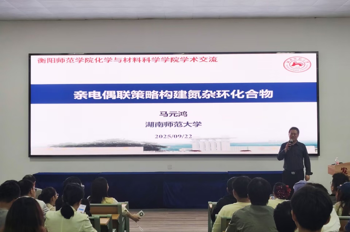 2025年9月22日下午,湖南师范大学化学化工公司马元鸿教授应邀来访公司,在学奎楼104会议室分别作了题为“亲电偶联策略构建氮杂环化合物”与“师范院校化学学位点建设及人才培养的探索”两场专题报告。报告会由公司副经理李文艺教授主持,公司部分专任教师、全体硕士研究生及部分本科生代表参加。