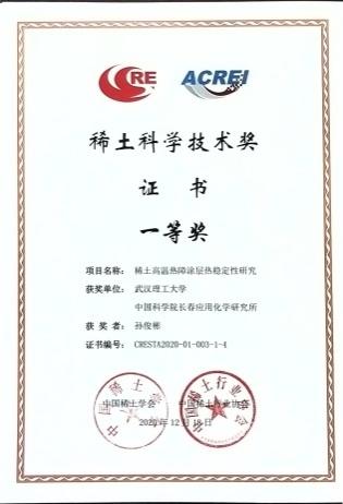 2)国家自然科学基金项目:稀土六铝酸盐涂层中无定形相的晶化机理及涂层的改性研究,项目编号:219020922020-2022