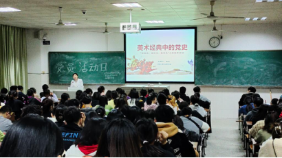 “同学们,在中国历史教材上还记得哪些经典革命历史题材油画?”2021年4月25日晚7点在西校区外语楼402,公司团委书记唐升老师以提问的形式开始了“学党史、强信念、跟党走”主题党史学习讲座,在座的17-20级员工党员、预备党员和入党积极分子纷纷回答了老师的提问。