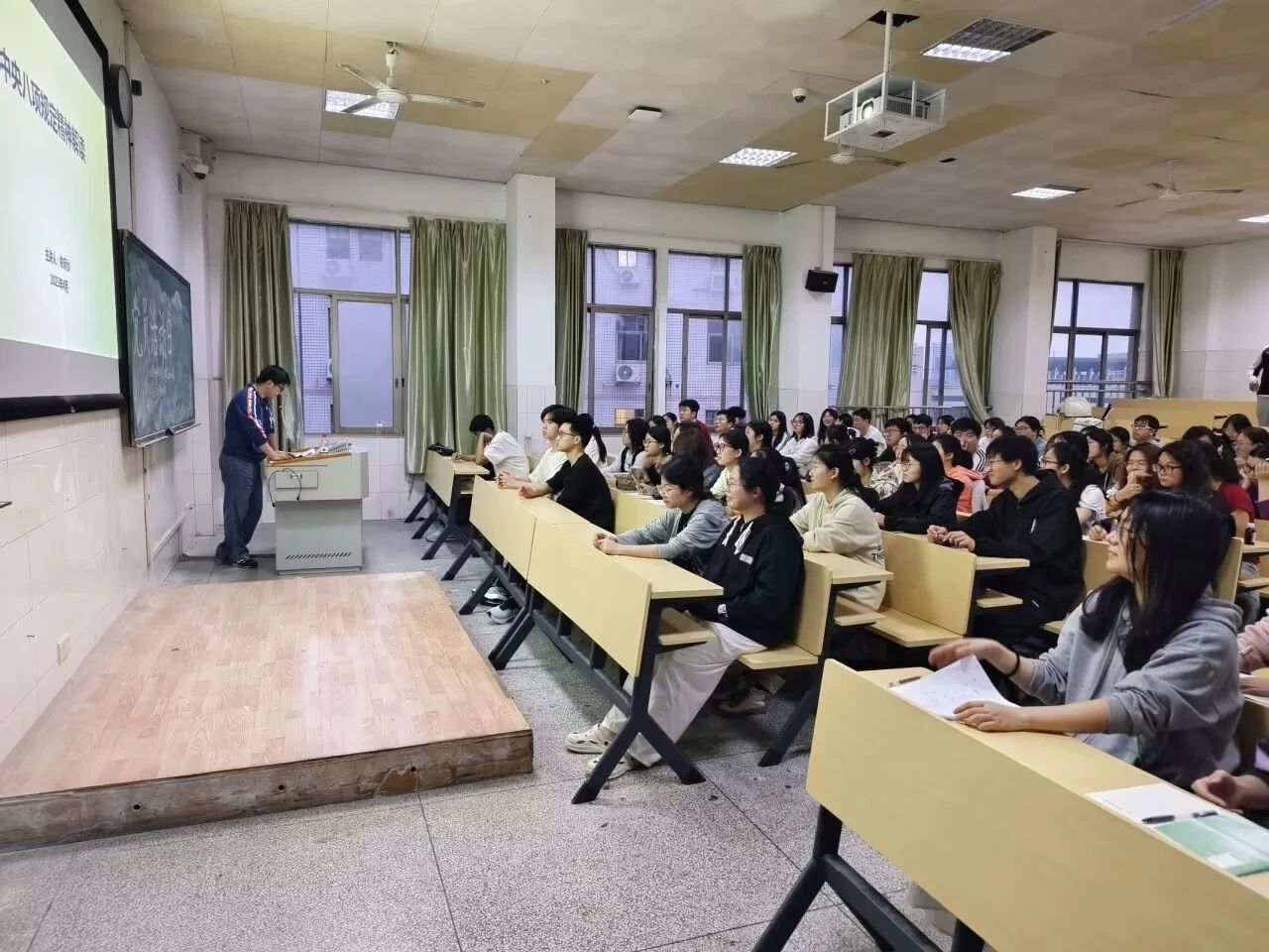 “全党要牢记毛泽东同志提出的‘我们决不当李自成’的深刻警示,牢记‘两个务必’,牢记‘生于忧患,死于安乐’的古训”,姚老师以习近平总书记在纪念毛泽东同志诞辰120周年座谈会上的讲话引入,从党的作风建设、什么是党的作风以及中央八项规定出台的背景三个方面引入主题——中央八项规定精神的解读。随后,他从中央八项规定的意义、违反中央八项规定精神的类型以及对中央八项规定的理解带领大家展开学习。中央八项规定的出台,在全国范围内具有导向作用,各级党组织向中央树立的标杆看齐,其实质为厉行勤俭节约、反对奢侈浪费和奢靡之风,廉洁从政、工作作风务实。愈是大道如砥、闯关夺隘,愈需淬炼作风、凝聚人心,让党组织更加坚强有力,让我们的党员队伍更加过硬有为。最后姚老师提出,大家要自觉增强学习教育的责任感紧迫感,联系全面从严治党的形势任务,将中央八项规定及其实施细则精神落实做到融会贯通。