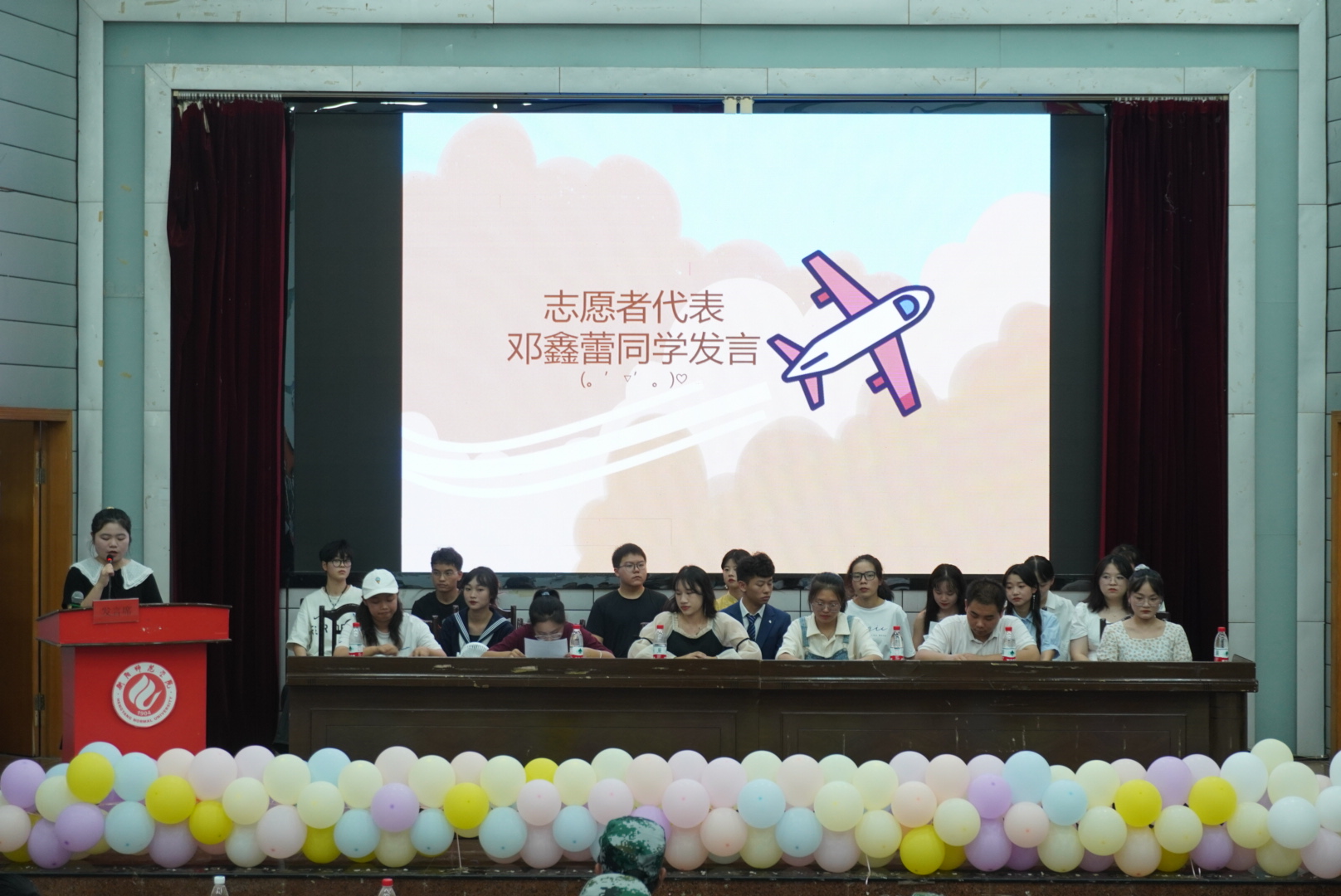 大会的第一个环节是2022年暑期“三下乡”社会实践活动汇报,本次活动在公司老师和同学们的共同努力下取得了优异的成绩。通过团委副书记陈镜姣同学对三下乡的介绍,新生们初步了解到了此次三下乡活动的开展情况。通过志愿者代表邓鑫蕾“三下乡”实践心得分享,新生们进一步理解了“进步”“互助”的志愿服务精神,体会到了三下乡志愿服务者“不怕吃苦”“敢于担当”的可贵品质。