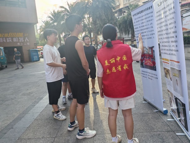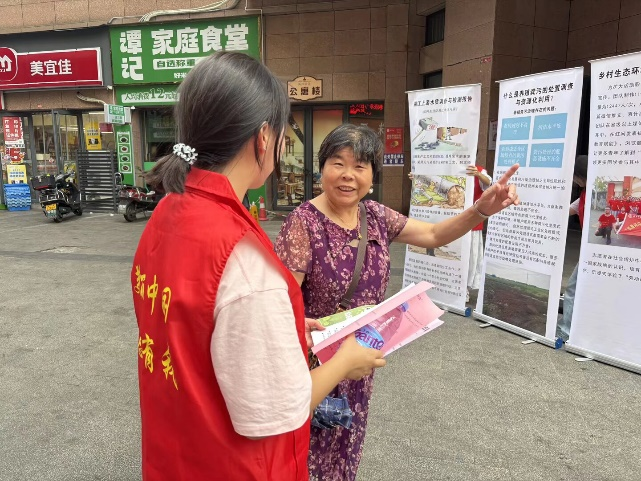 此外,20 名绿色卫士志愿者还通过展板展示与“公民十条”宣传册分发,把环保知识送到居民手边。展板上的生态案例、宣传册里的行动指南,每一页都印着 “美丽中国,志愿有我”—— 因为这是我们团队每一个人的心声,也是想传递给居民的信念:传播环保知识,我们在行动;学习环保技巧,居民也能成为 “绿色行动者”。 “生态大米与民生”板块生动展现生态农业双赢模式,传递“绿色发展”实践路径。我们主动路过的居民翻开宣传册讲解 “怎么给电池找‘新家’”“怎么选节能灯泡更省电”,就是要确保每一位居民都能感受到:绿色卫士在身边,环保行动 “我” 能行,不让任何一个人错过参与绿色生活的机会。