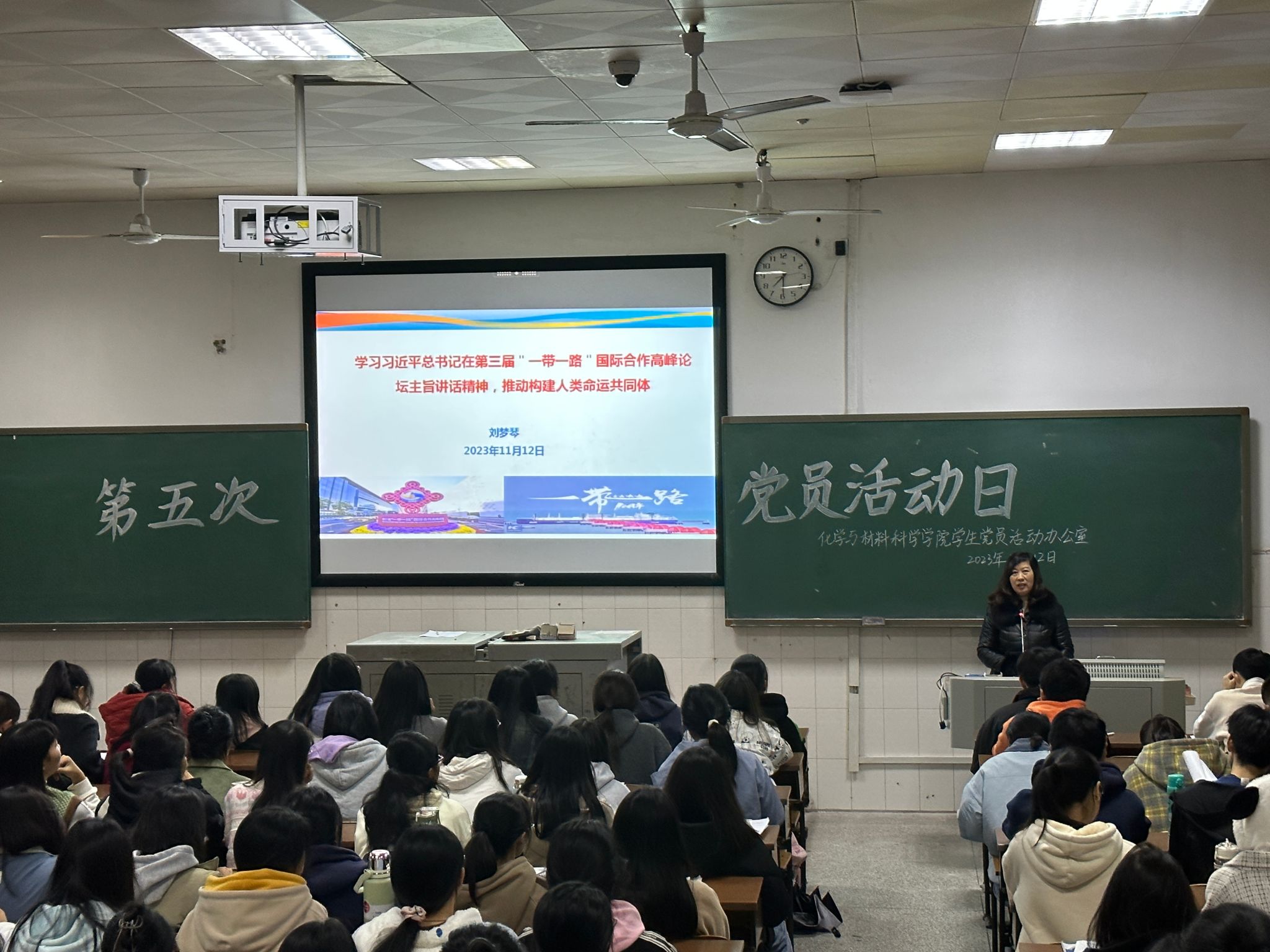 “习近平总书记说,十年栉风沐雨,十年春华秋实。共建‘一带一路’源自中国,成果和机遇属于世界。”2023年11月12日晚,行知楼601教室座无虚席,公司党总支刘梦琴书记为参会的全体党员和入党积极分子讲述《学习习近平总书记在第三届"一带一路"国际合作高峰论坛主旨讲话精神,加快推进人类命运共同体建设》的党课。