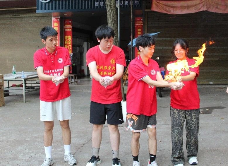 活动前期,队员们制作科普手册、设计科学魔术秀、出发前的一次次排练,每一个环节都注入了队员们对科学知识送进乡村大地的热情。天刚蒙蒙亮,队员们便背上物资向镇上出发,做好迎接准备,随着村民们的陆续到来,队员们围绕农药化肥、食品蔬果、生活用火等方面的安全常识展开了宣讲,“水果有一点点发霉,削掉可以吃吗?”“农村里烤火会存在哪些安全隐患呢?”“所有的塑料瓶子都可以永久使用吗?”针对村民们常见的认识误区,队员们进行了一一解答,号召村民们平时多关注生活常识,学习科学,相信科学。为了活跃现场氛围,队员们带来的科学魔术秀《火焰掌》,火焰在队员们手掌间传递、跳跃,引发了更多村民的围观。团队还开展了有奖竞答环节,让村民们在活动中提高对科学的认识,增强科员工活的意识。