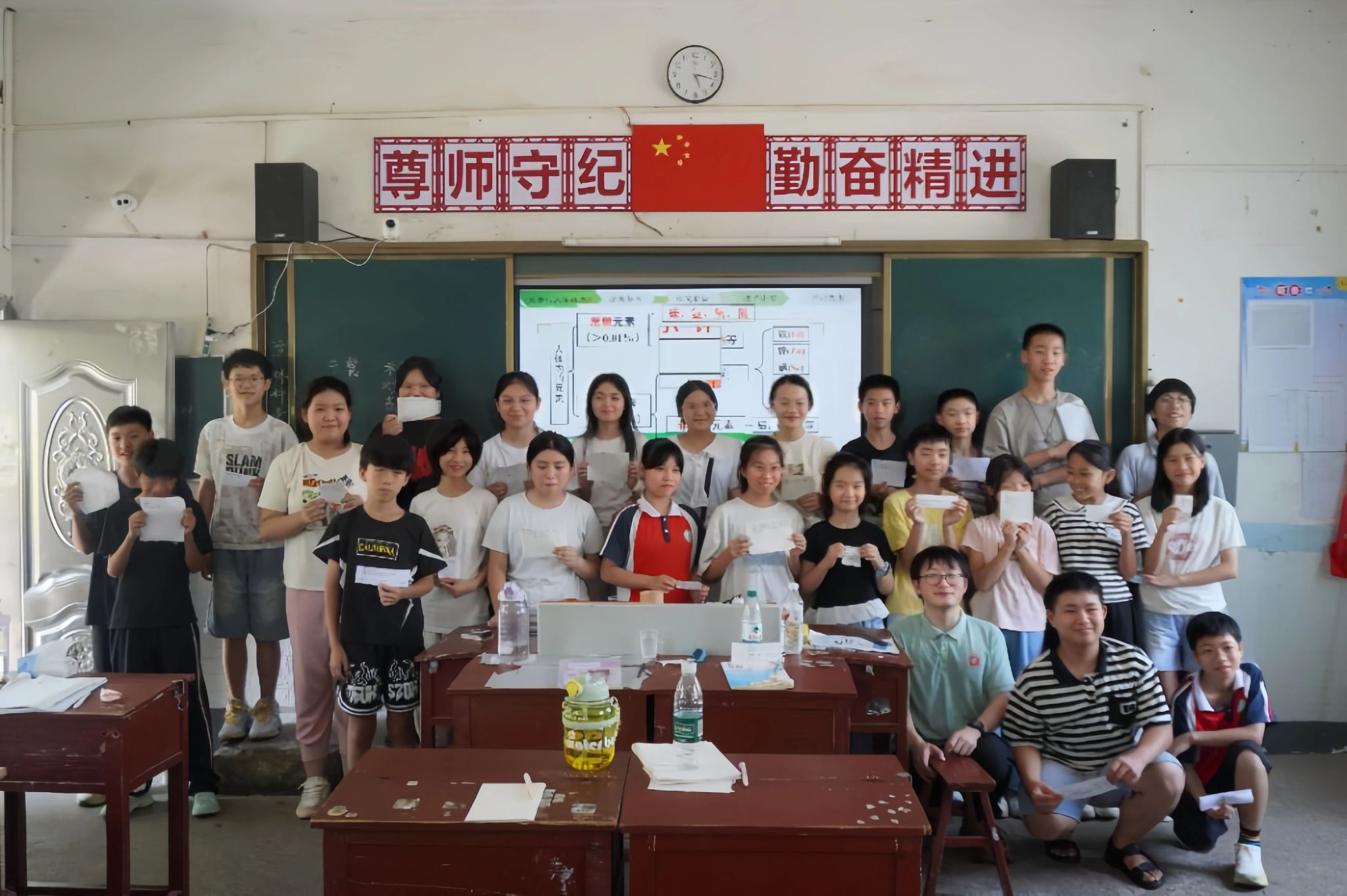 7月8日,44118太阳成城集团“‘锌’火筑梦”科普队于衡南县近尾洲镇蒸市中学开展的三下乡科普活动步入第三天。科普队成员彭俊帅为该校初中部员工讲授了两场科普理论课,以生动的化学知识关联健康与农业,引发乡村学子对科学的强烈好奇,助力乡村科普教育发展。