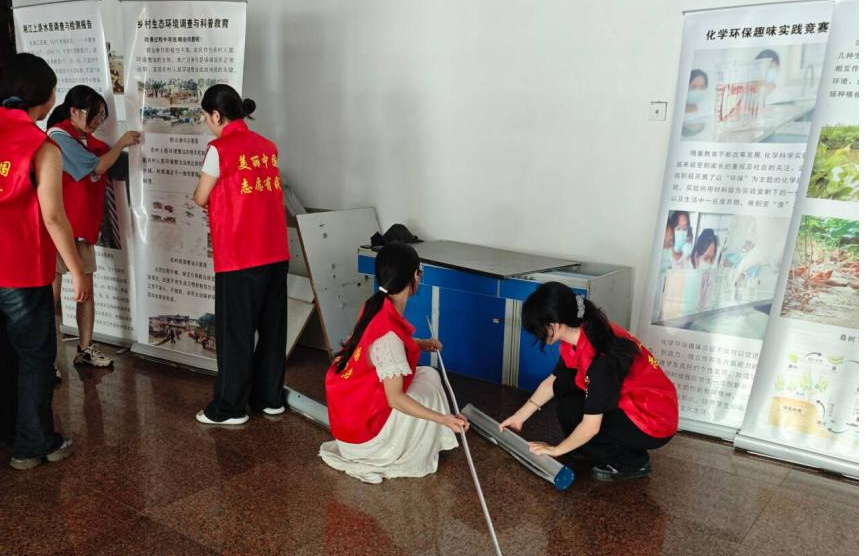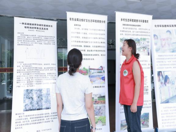 在前期筹备阶段的展板挑选环节,团队成员紧扣“生态环境科普”核心,优先选取配图直观、内容贴近生活的展板——既融入生态保护专业知识点,又确保师生能轻松理解。活动现场,系列展板有序排布,打造出沉浸式生态科普空间,让“绿色卫士下三湘”的主题氛围贯穿全程。