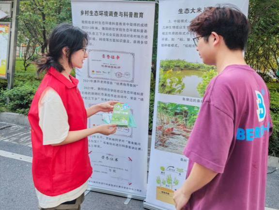 讲解中,志愿者们以生活中的实际案例,引导师生思考个人行为与生态环境的紧密联系,让绿色理念在交流中深入人心。与此同时,他们向师生分发以“公民生态十条”为核心的自制生态环境宣传册,用卡通形象与通俗文字详解“节约能源资源”“践行绿色消费”等生态行动指南,将专业知识转化为可操作的生活准则。“美丽中国,志愿有我”,每一位绿色卫士都在传播环保知识、践行科普行动的路上不断奋斗,带动师生从拒绝餐饮浪费、选择低碳出行等日常小事做起,让生态保护融入生活,以实际行动诠释“我是行动者”的担当。