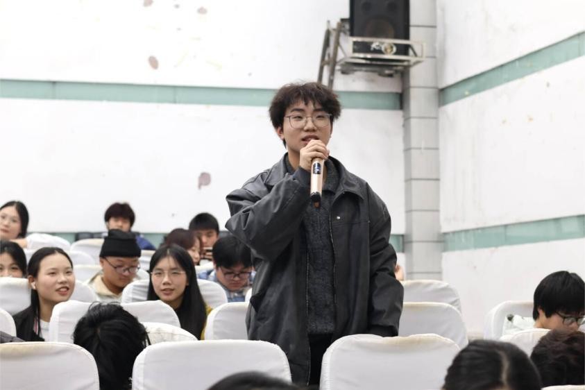 随后,萤火虫志愿服务社社长周彬彬发言。首先,他感谢全体队员在志愿活动中的辛勤付出与倾力奉献,并阐述了社团成长历程,再对2025年重点活动进行了总结。其发言真挚深刻,既为活动拉开帷幕,更点燃现场氛围,让每一位参与者对化学科普与志愿精神有了更真切的体悟。