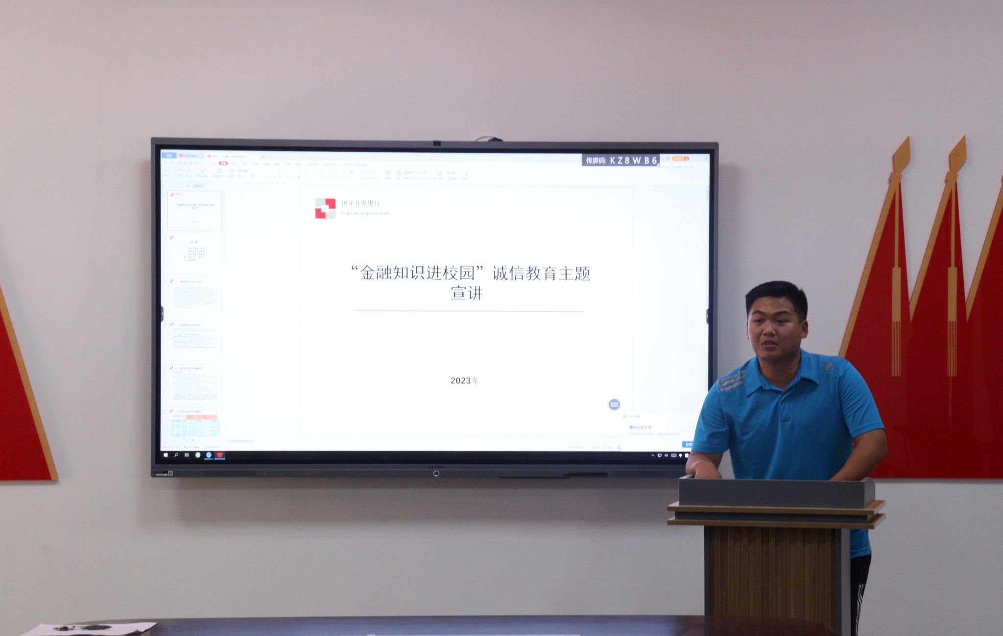 为帮助公司员工提高对金融知识的了解程度、加强诚信意识,公司于2023年5月30日中午12:45在系楼一楼会议室开展了“诚实守信、立德树人”专题讲座。由钟彪老师担任本次主讲人,公司申请了生源地助学贷款的同学参加了此次讲座。
