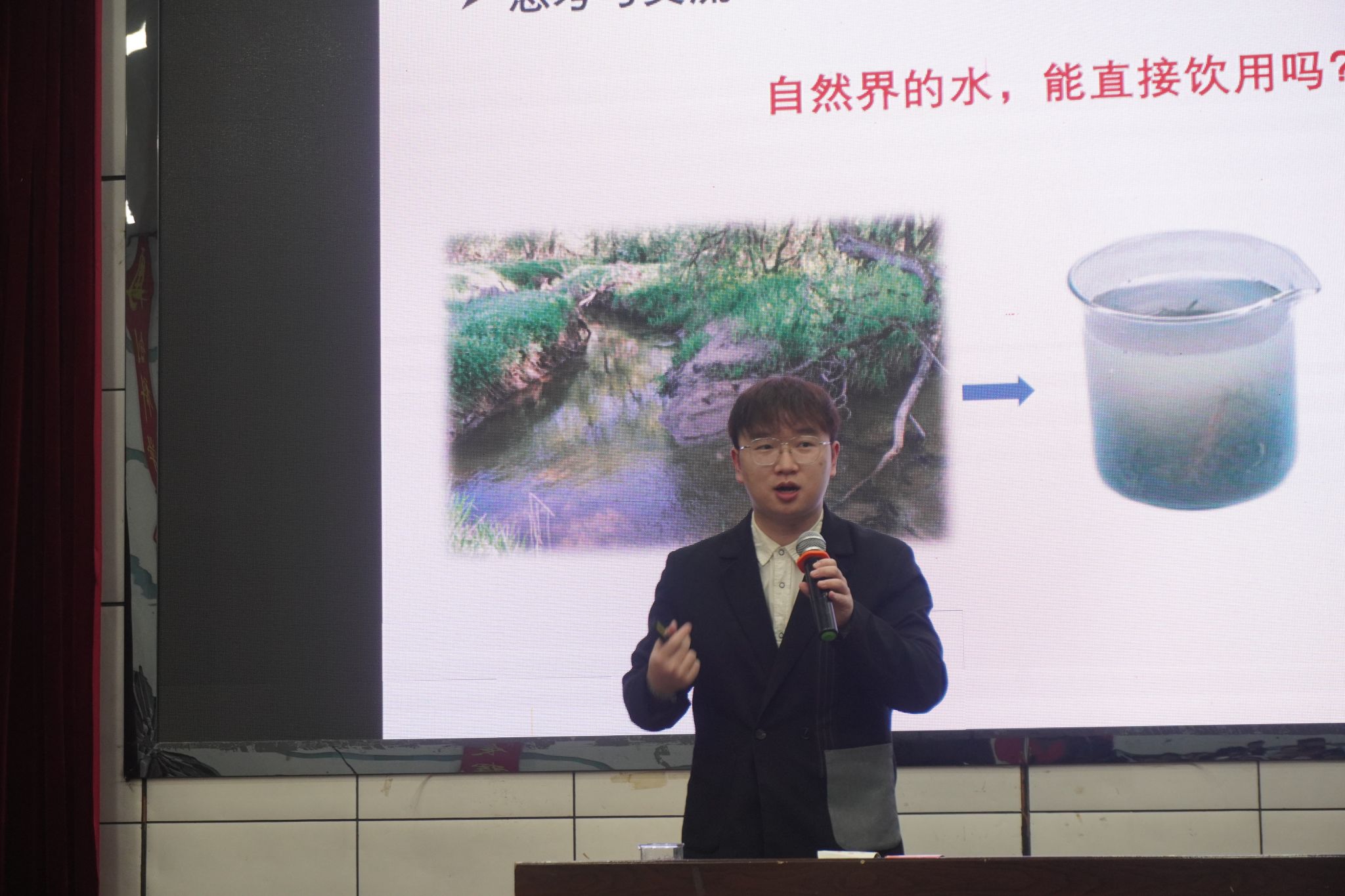 活动开始,全省师范生技能竞赛获奖者罗帆杨同学以一个‘自然界的水能直接饮用吗’的问题导入主题为《水的净化》的片段教学示范课。十分钟的精彩展示让同学们全程体验了师范生技能大赛中片段教学环节。他在分享参赛经验时,激励学弟学妹要坚定教育情怀,勇担时代重任。全国师范生微课大赛特等奖获得者王书展同学就“如何从评审标准的角度做好一堂微课”的问题,给同学们提出了许多行之有效的建议。
