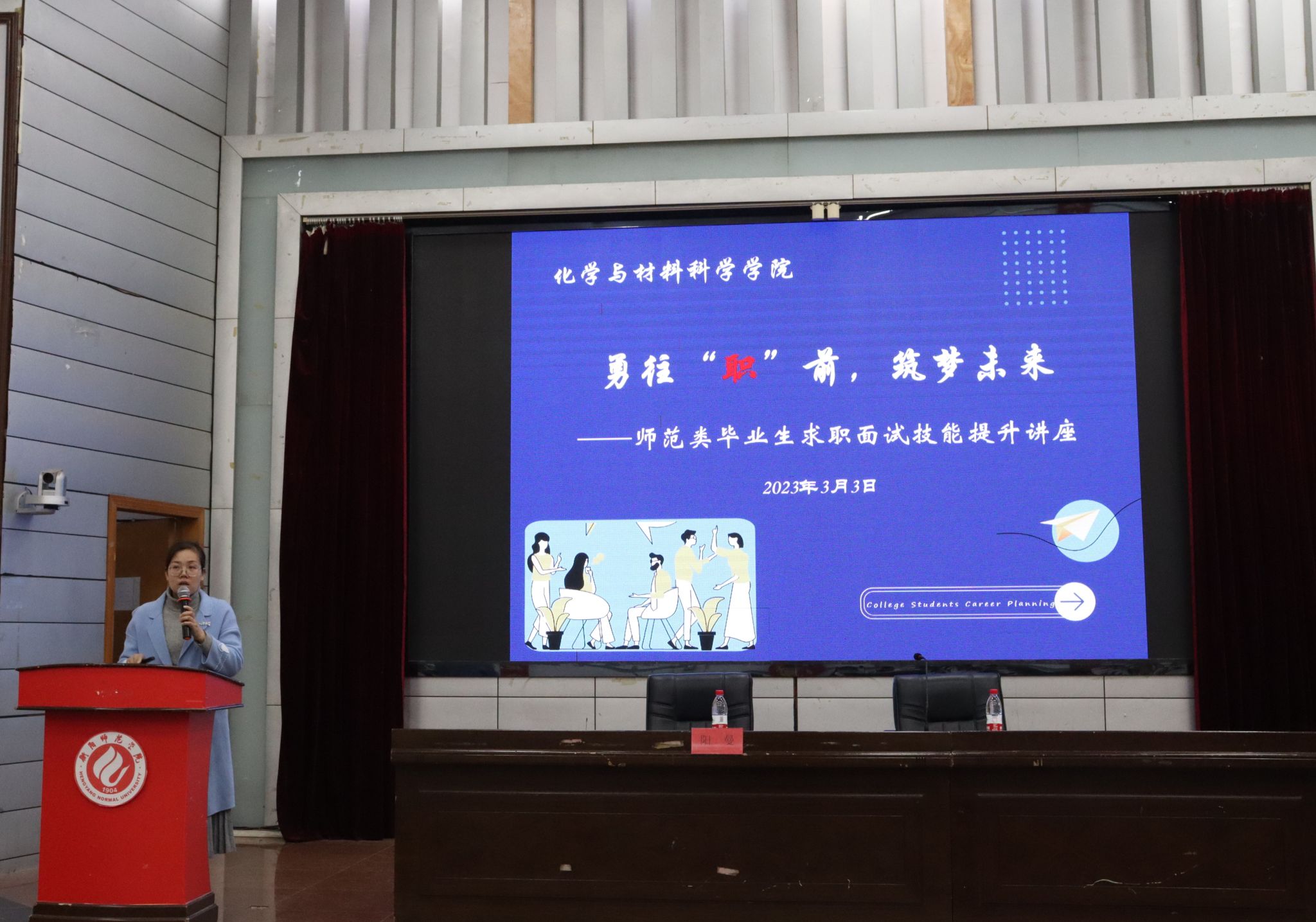 会议伊始,阳书记对今年的就业形势进行了简要分析,她以益阳市六中、醴陵市三中、衡阳市博文高级中学等单位2023年中学化学教师招聘计划为例,比较分析化学学科与其他学科在就业形势上的差异,并对以上公司教师招聘报名要求及条件、教师招聘考试环节和考试内容逐一进行讲解,使同学们对师范类毕业生就业的重要环节有更加深入的了解。她激励同学们要抓住机会,多途径获取就业信息,要提前熟悉中学教材和新课程标准,要在说课、试教上下深功夫,多做准备,主动出击。此外,她还为同学们简要讲解了简历制作和求职面试礼仪方面的知识。