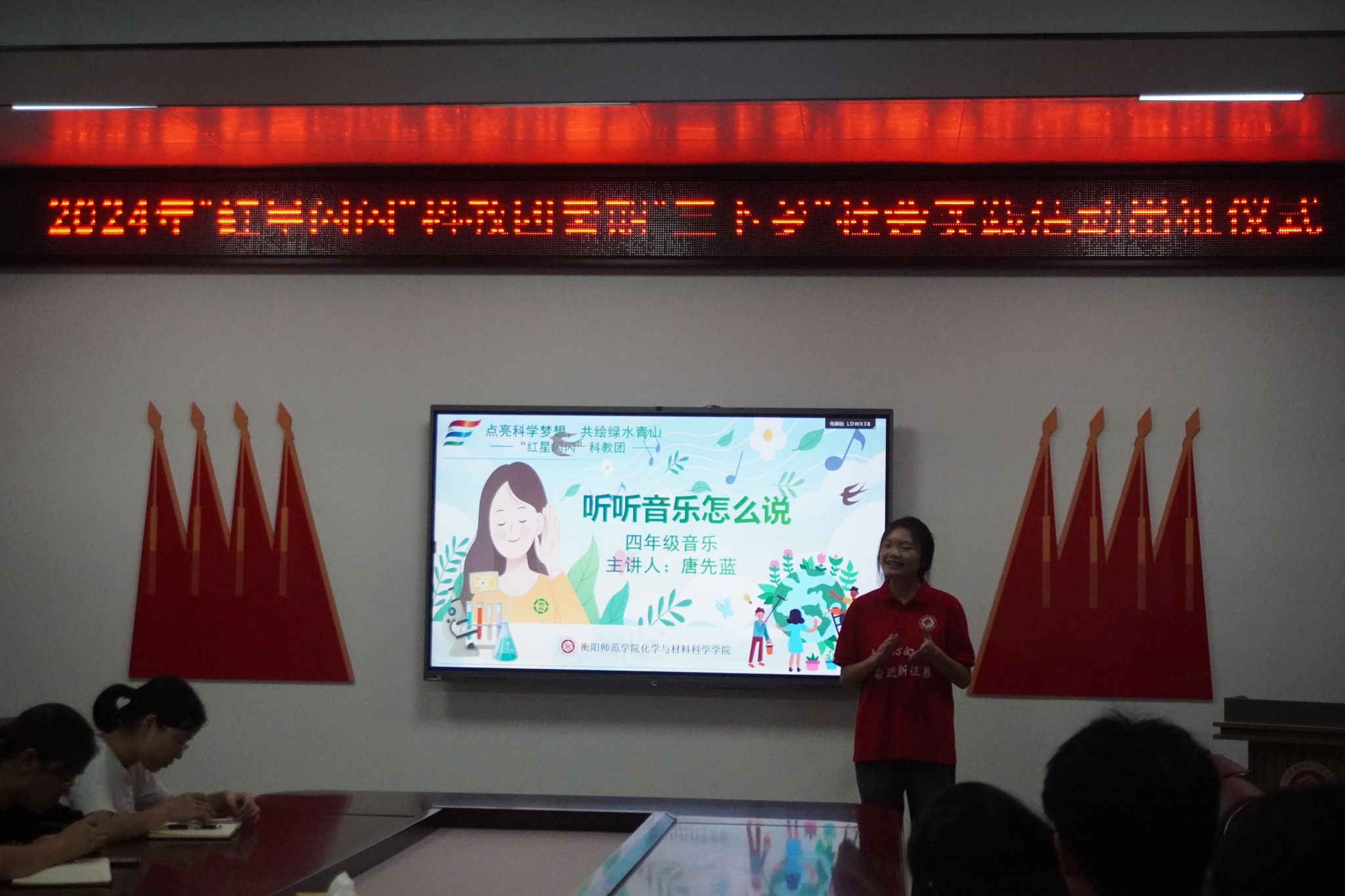 指导老师唐升希望同学们要发挥自己的主观能动性,要有一双善于发现美的眼睛,多发现、多记录活动过程中美的瞬间、讲好团队故事。同时,也要守正创新,做好万全准备,保证各项工作有序开展,将“三下乡”科普活动办出特色。