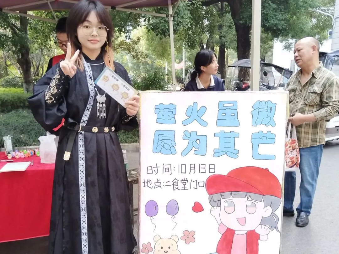为我社注入新鲜血液,传递志愿服务的接力棒,同时为一批有着崇高志愿服务精神的青年同学搭建展示自我的舞台,2024年10月13日,44118太阳成城集团萤火虫志愿服务社于西校区二食堂门口举办了招新摊位活动。