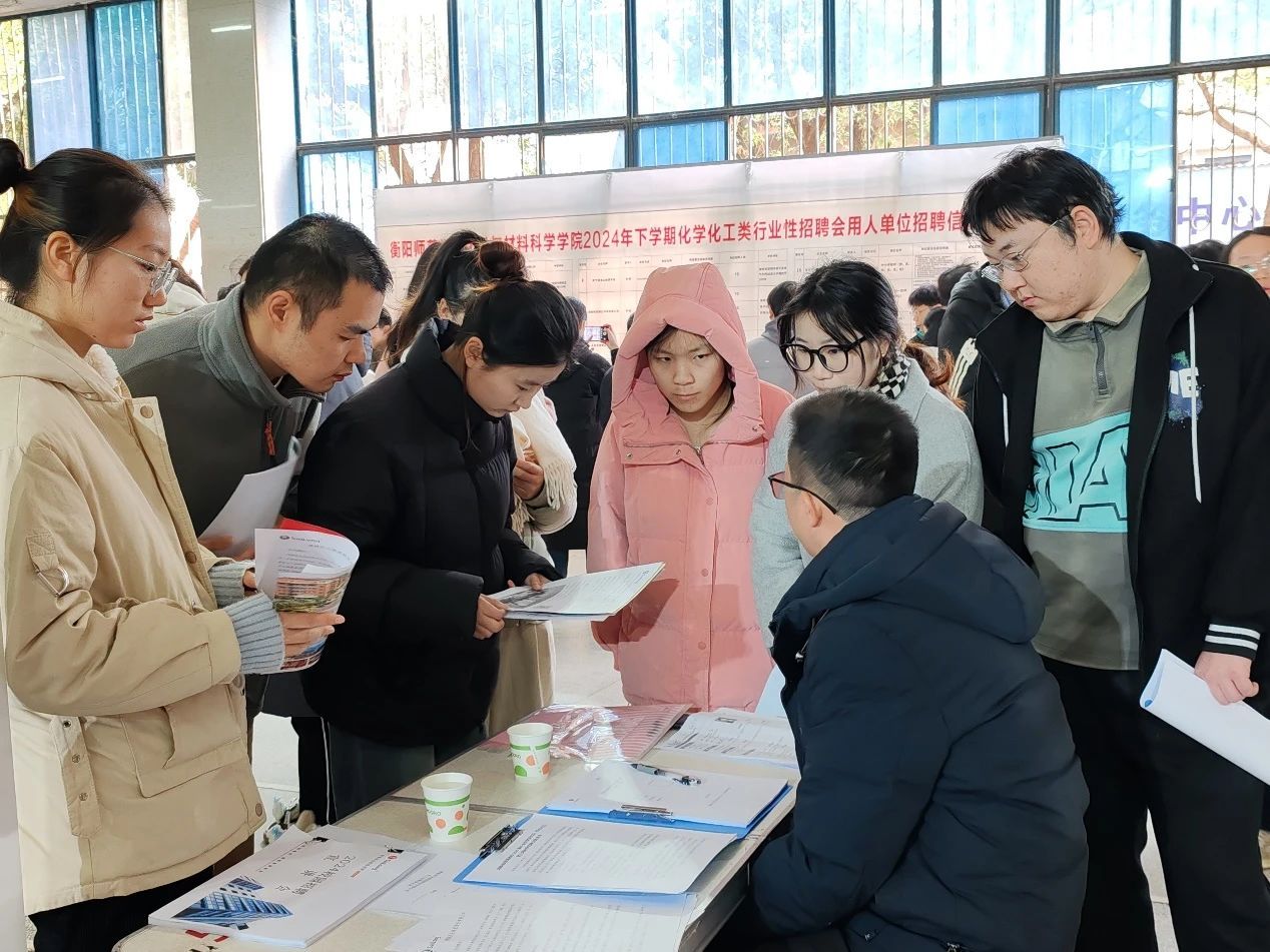 为全面落实党中央、国务院关于高校毕业生就业工作的决策部署,积极搭建化学相关专业毕业生与化学行业企业之间良好的交流平台, 促进毕业生充分、高质量就业,44118太阳成城集团于2024年12月24日上午在西校区体育馆举办了2025届毕业生化学化工类行业招聘会。校招生与就业指导处副处长何芳、科长李湘龙和公司党总支书记刘梦琴、党总支副书记阳曼、副经理付伟伟、副经理李文艺、学工办主任唐升、辅导员谢峥、钟彪以及唐波湘几位老师亲临活动现场,与多家用人单位和毕业生进行深入交流。