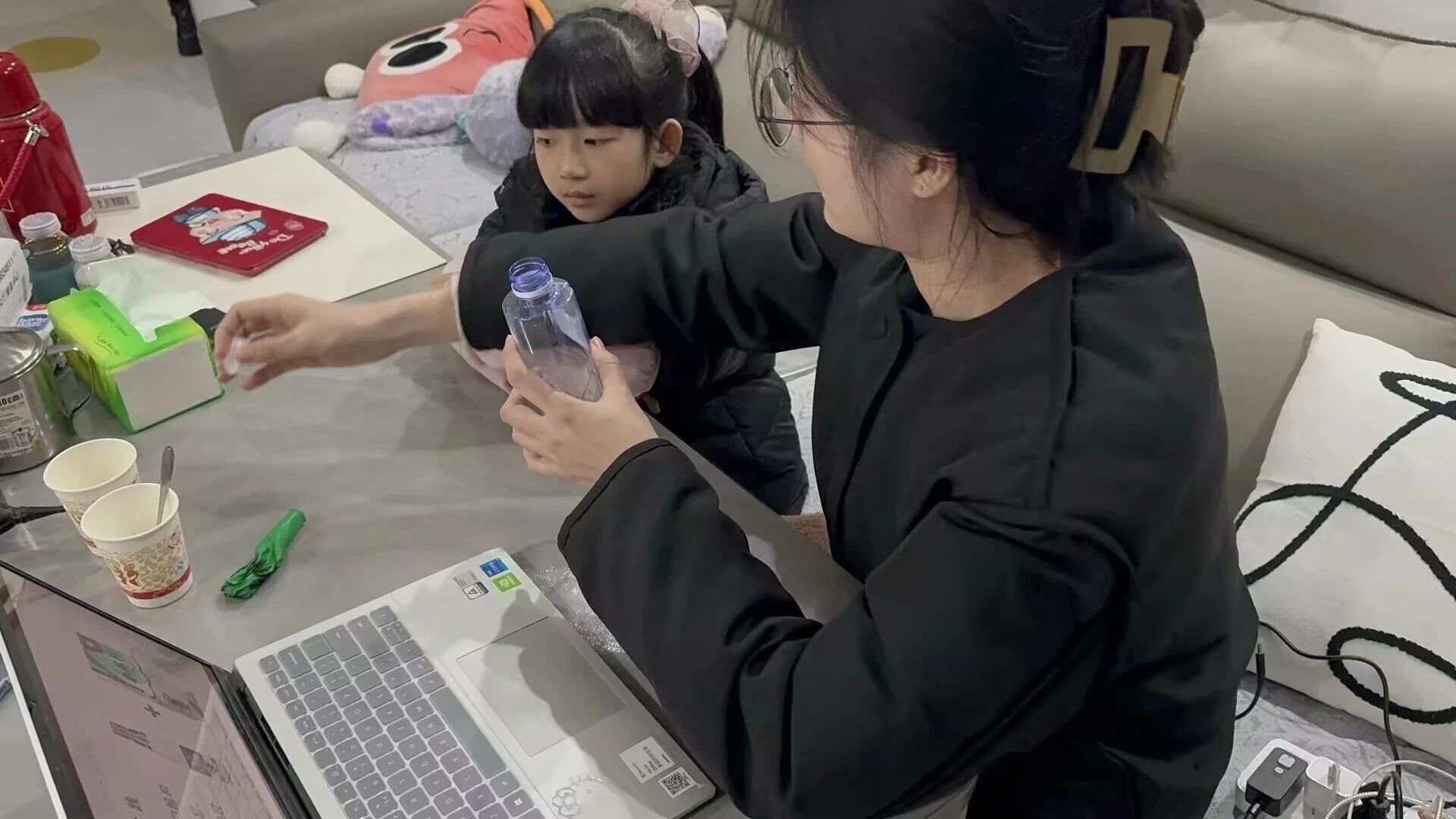 《神奇的灭火器》《谁吹灭了我的气球》《低碳生活,从我做起》等化学小实验激发了孩子们的科学兴趣,看到生活中的小苏打、醋就能发生化学反应,将气球变大,孩子们跃跃欲试。在队员们的指导下,孩子们熟练地操作一个个小实验,实验的成功让他们兴奋不已。队员们还利用腾讯会议开展趣味化学实验课,虽然与孩子们隔着屏幕,志愿者们教学的热情也丝毫不减。队员们用通俗易懂的语言解释复杂的科学知识,耐心细致地回答孩子们的疑问,孩子们也认真专注地参与到教学各个环节。