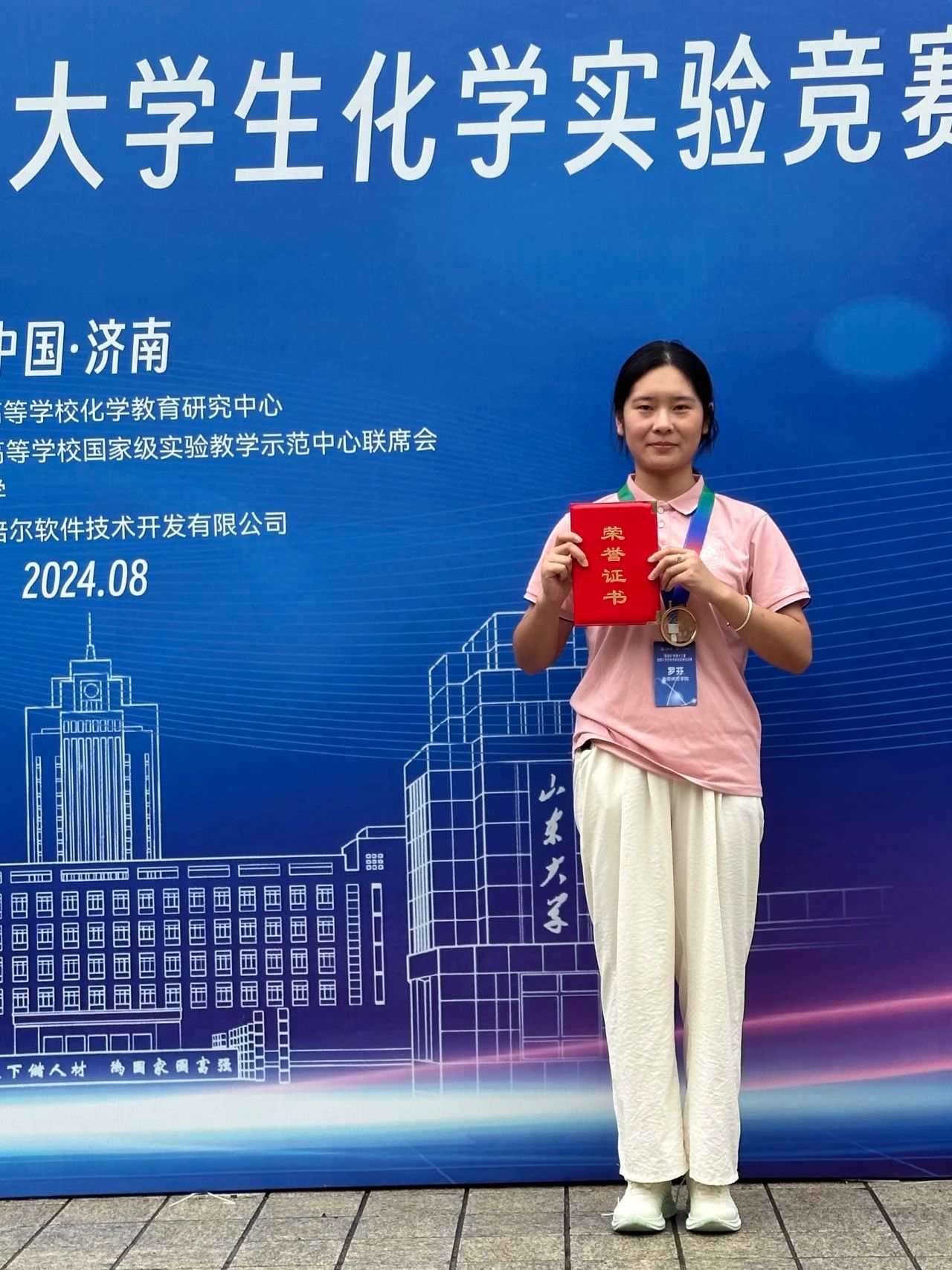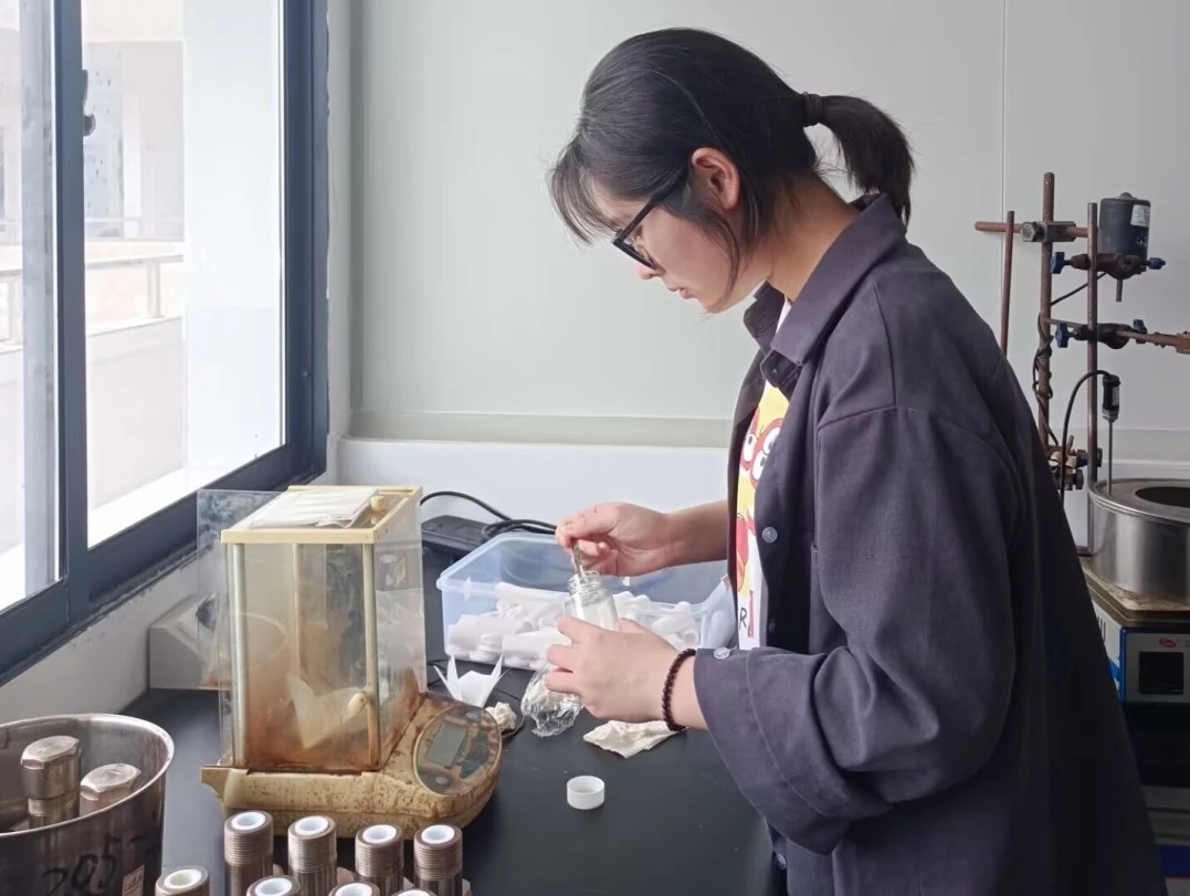 大三时,罗芬将学习重点转向实践与竞赛,力求将知识融会贯通、学以致用。2024年夏天,在湖南省老员工化学实验竞赛中,罗芬凭借指导老师的悉心辅导和自身的不懈努力,脱颖而出,荣获省级一等奖。这一成绩不仅让她获得了代表湖南省参赛的资格,更让她有机会与来自北京大学、清华大学等全国129所高校的174名化学精英同场竞技。